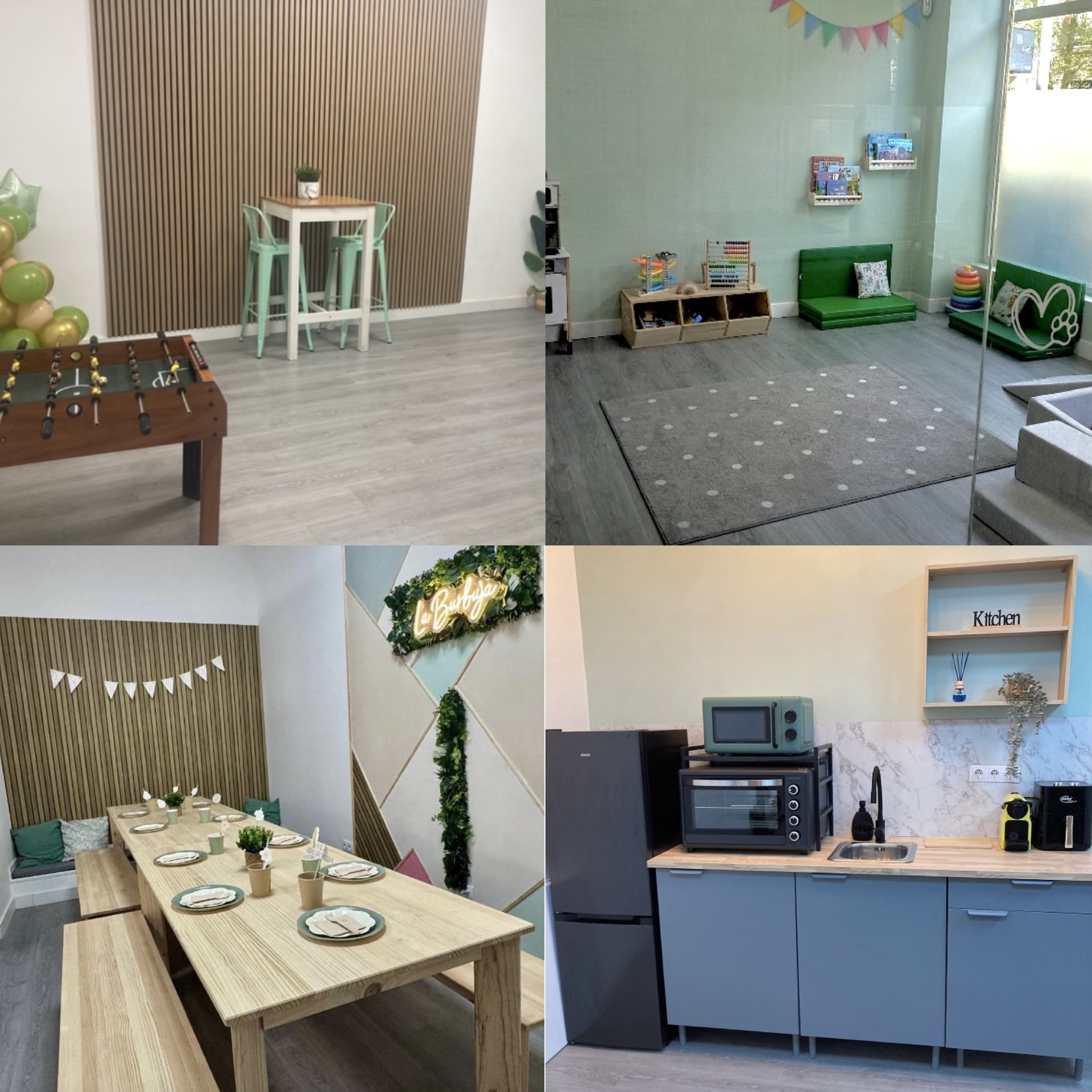 Además, contamos con una zona infantil que permite que los más pequeños disfruten mientras los adultos se relajan o se concentran en la actividad.